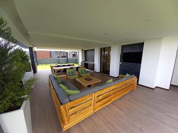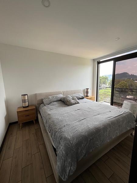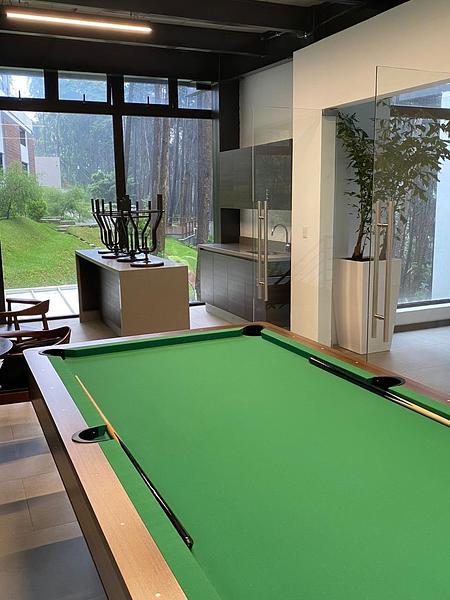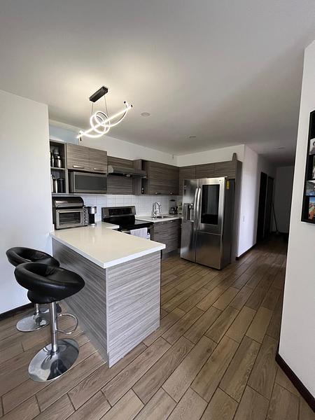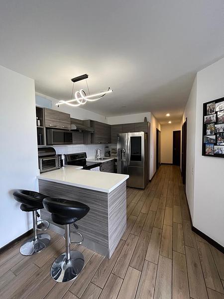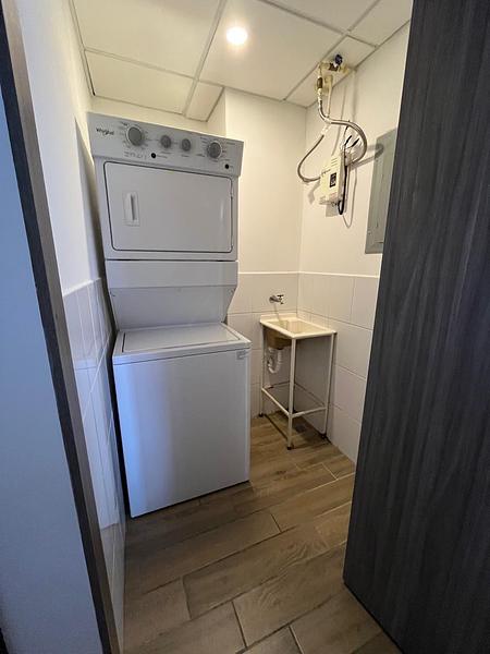 - Cocina equipada con línea blanca: refrigeradora, estufa, microondas, torre de lavado y secado