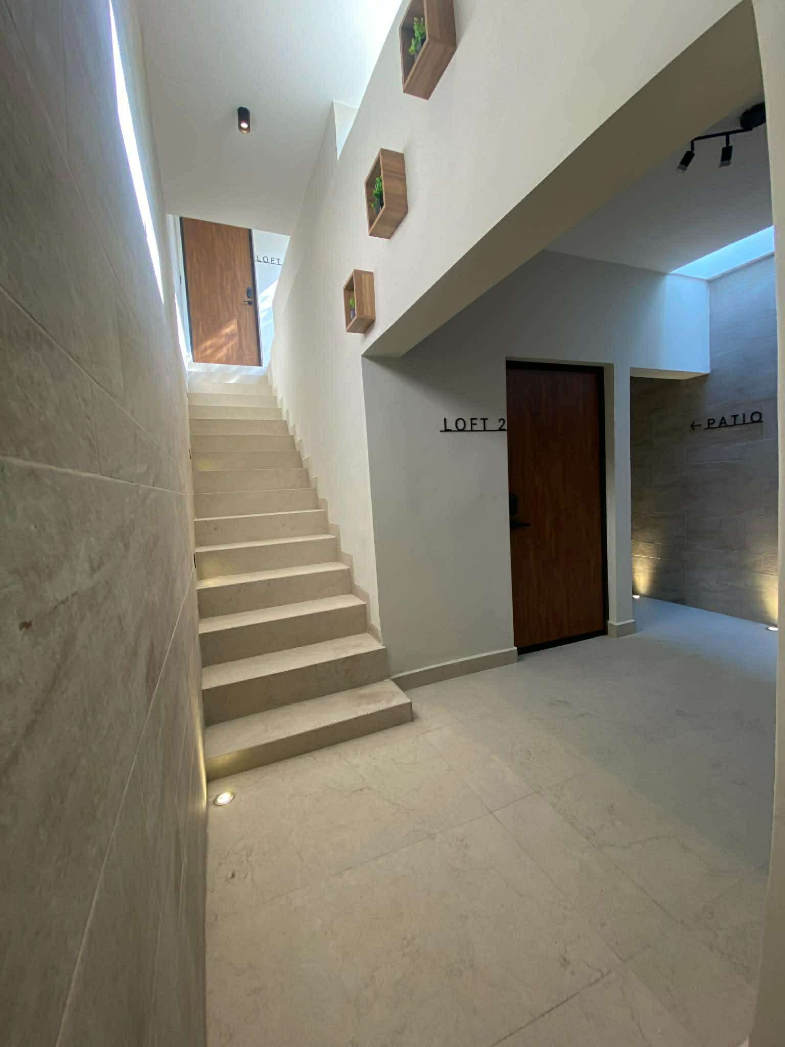 EQUIPAMIENTO E INSTALACIONES • Cuenta con climas frío/calor Inverter Mirage Magnum 22 (línea premium y eficiente). • Servicios: electricidad y agua. Se utiliza gas butano (el tanque está en azotea), pero cuenta con preparación para gas natural (en la entrada). • Cada loft cuenta con una parrilla eléctrica (móvil, no empotrada en la cocineta, se conecta al usarse). • Se dejó un área en el segundo piso, destinada para la instalación de un centro de lavado eléctrico. • Preparación en azotea para: Tanque de agua | Bomba hidráulica.