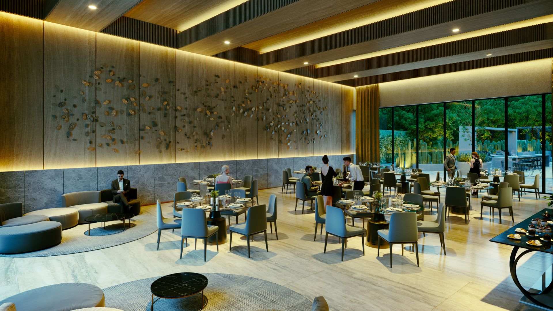 - Amenidades: alberca, cuarto de juegos, simulador de golf, salón multiusos, bar, salón de té, home office, home school, cocina, valet, almacén, jardín, áreas verdes, área de mascotas y más.